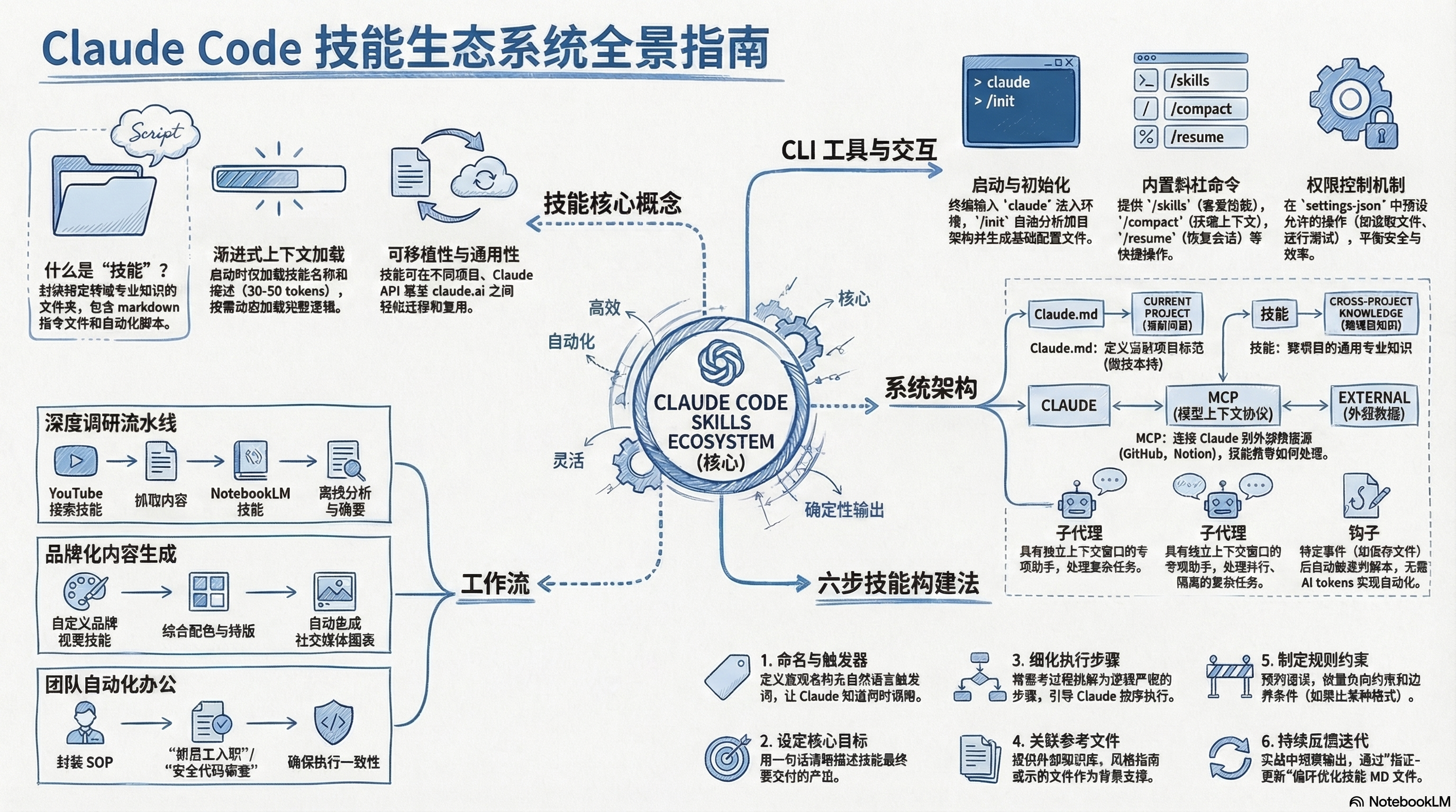 基于 YouTube 8 个精选视频的深度研究,使用 NotebookLM 自动分析生成。本文将带你理解 Claude Code Skills 的核心概念、与 MCP 的区别、技能构建六步法,以及实战工作流应用。